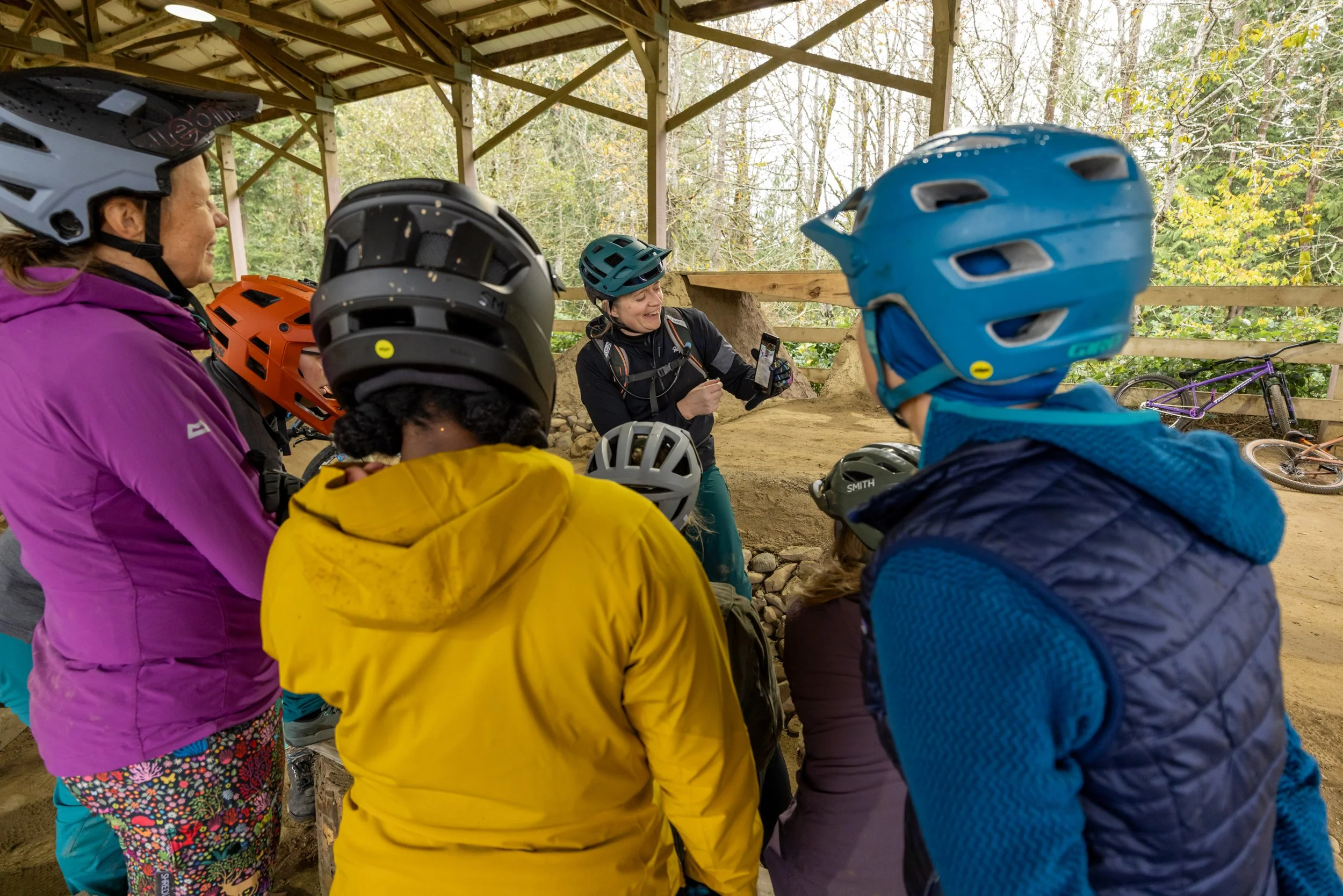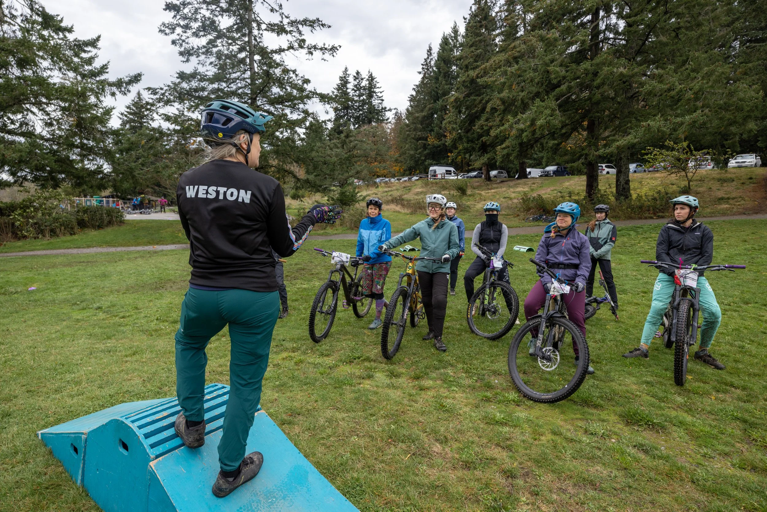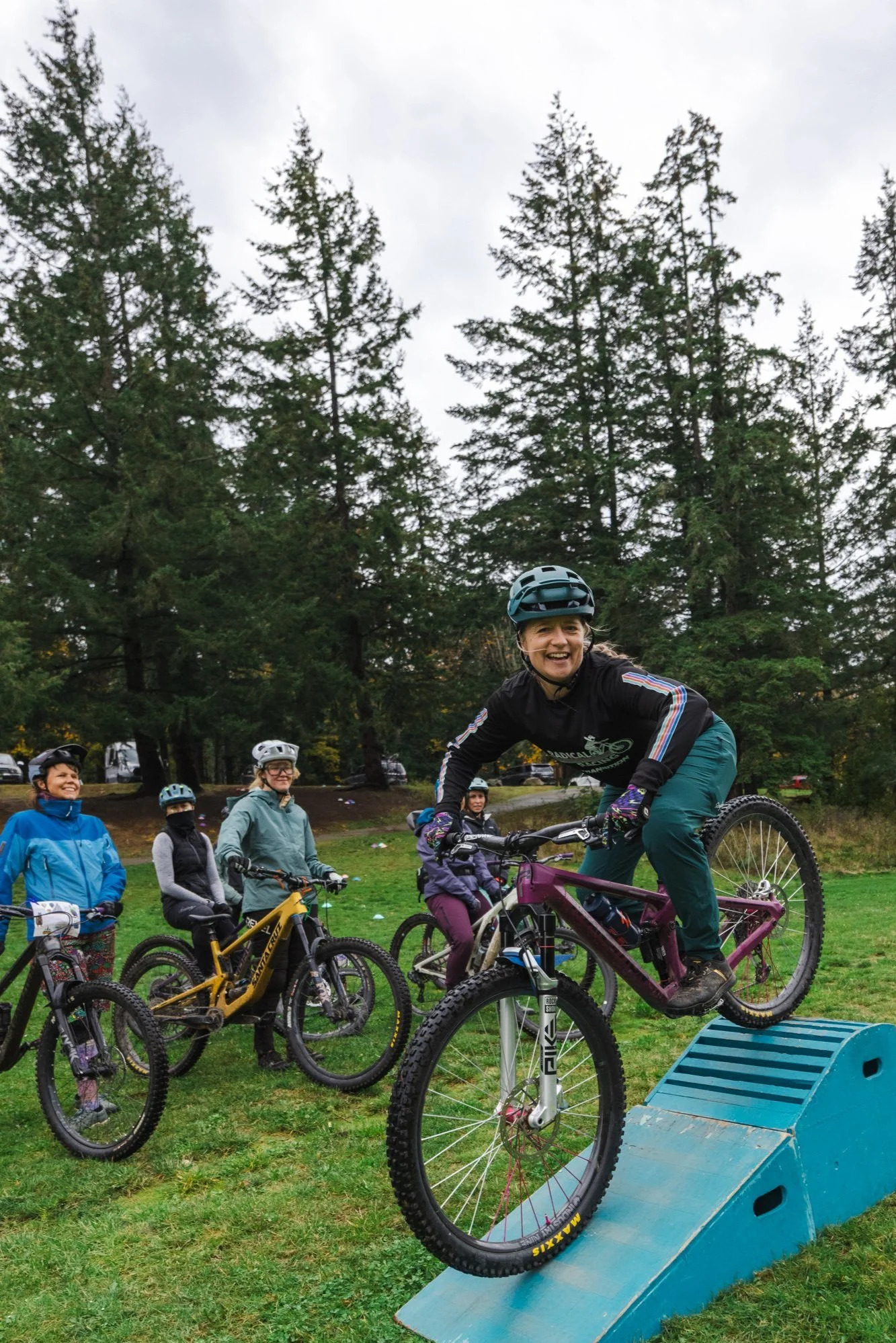 Hi, I’m Angi Weston, owner and head coach of Radical Roots MTB Instruction in Bellingham, WA. I have been coaching technical mountain bike skills since 2002 and am Level 3 certified through the Bicycle Instructor Certification Program (BICP), making me one of the most qualified, experienced, and highly sought-after mountain bike coaches in North America. My mission is to get more people, especially those who identify as female, femme, or non-binary, and those from historically marginalized communities, riding and loving bikes. As a coach and mentor, I am deeply involved in the cycling community and value connection, collaboration, compassion, and gut-splitting good times.